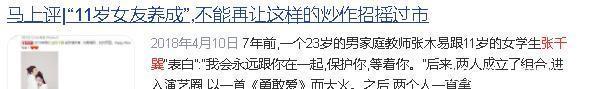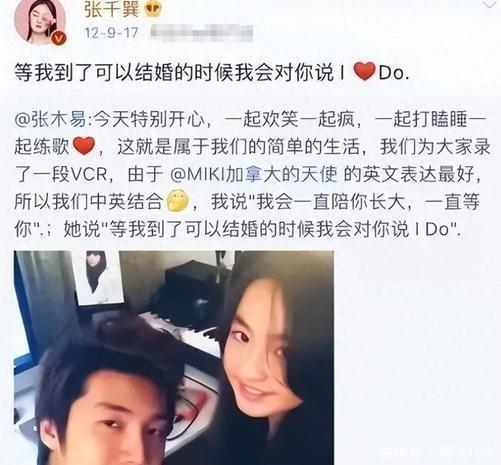 于是,2012年,一个惊世骇俗的消息在网络上突然被议论纷纷。12岁的张千巽,在微博上高调官宣,她与比她大13岁的音乐老师张木易相恋! 张木易在微博上深情表白:“我会一直陪你长大,一直等你。”而张千巽则回应道:“等我到了可以结婚的时候我会对你说我愿意。”