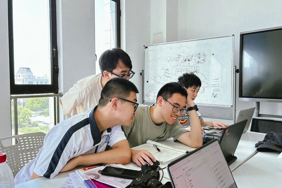 曹杨二中与复旦大学计算与智能创新学院携手启动了“复旦AI领航”计划。图为中学生走进高校校园学习AI技术。