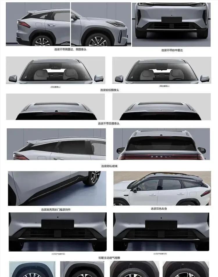 在外观设计上,银河M7也是与银河L7有点不一样的,比如说前脸采用银河家族式封闭设计,配备更宽的贯穿式日行灯,不过将大灯与日行灯融合为一体,不再使用采用分离式设计,有点理想L系列的意思,更接近大众的锐利大灯风格。同时两侧进气口得到保留,使用银色装饰条。侧面造型倒是更像燃油车,传统门把手、犀利的线条,以及向前的俯冲的姿态带来的运动感,都非常好看。车身尺寸方面,新车长宽高分别为4770/1905/1685mm,轴距为2785mm,5座SUV。新车依旧采用传统的门把手,车顶向后下溜设计,尾部贯穿式尾灯样式,中央是吉利英文标识,两侧车灯有着犀利的棱角。